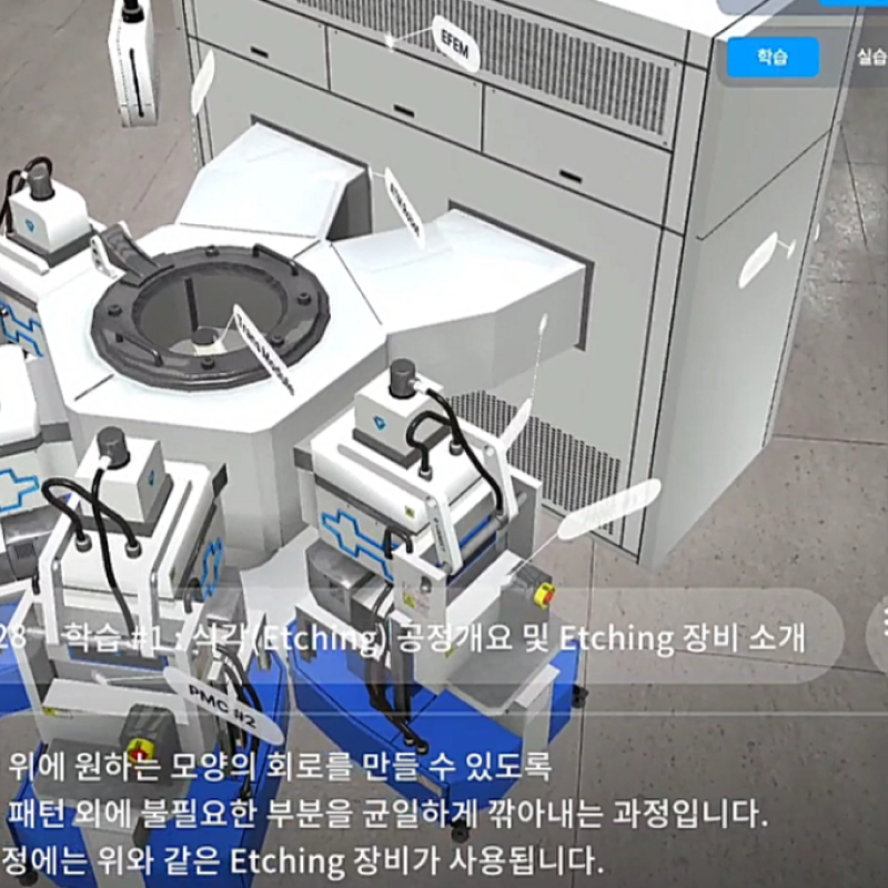 Learning the complex procedures of semiconductor and display processes with XR content reduces training time and costs, while quickly improving worker proficiency.